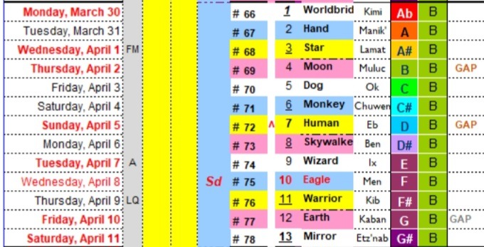 Four 65-day Seasons begin day #185 SERPENT - DOG - EAGLE - SUN